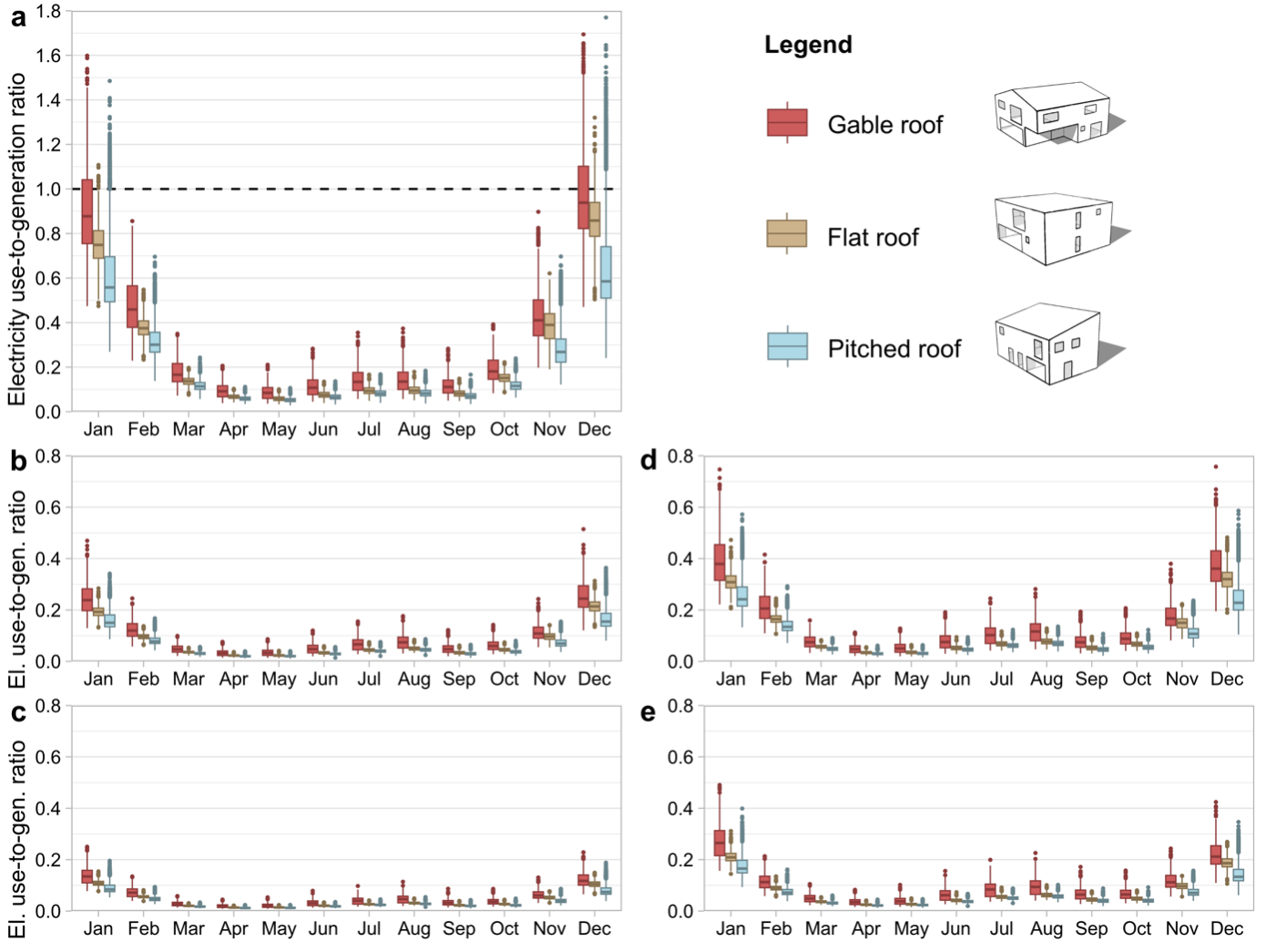 - Roof Design is Decisive: The study highlights a conflict between traditional aesthetics and energy performance. Gable roofs—often mandated by local urban planning—perform poorly for PV generation compared to pitched or flat roofs. In some regions, restrictive roof requirements can be the single factor that prevents a building from reaching NZEB status.