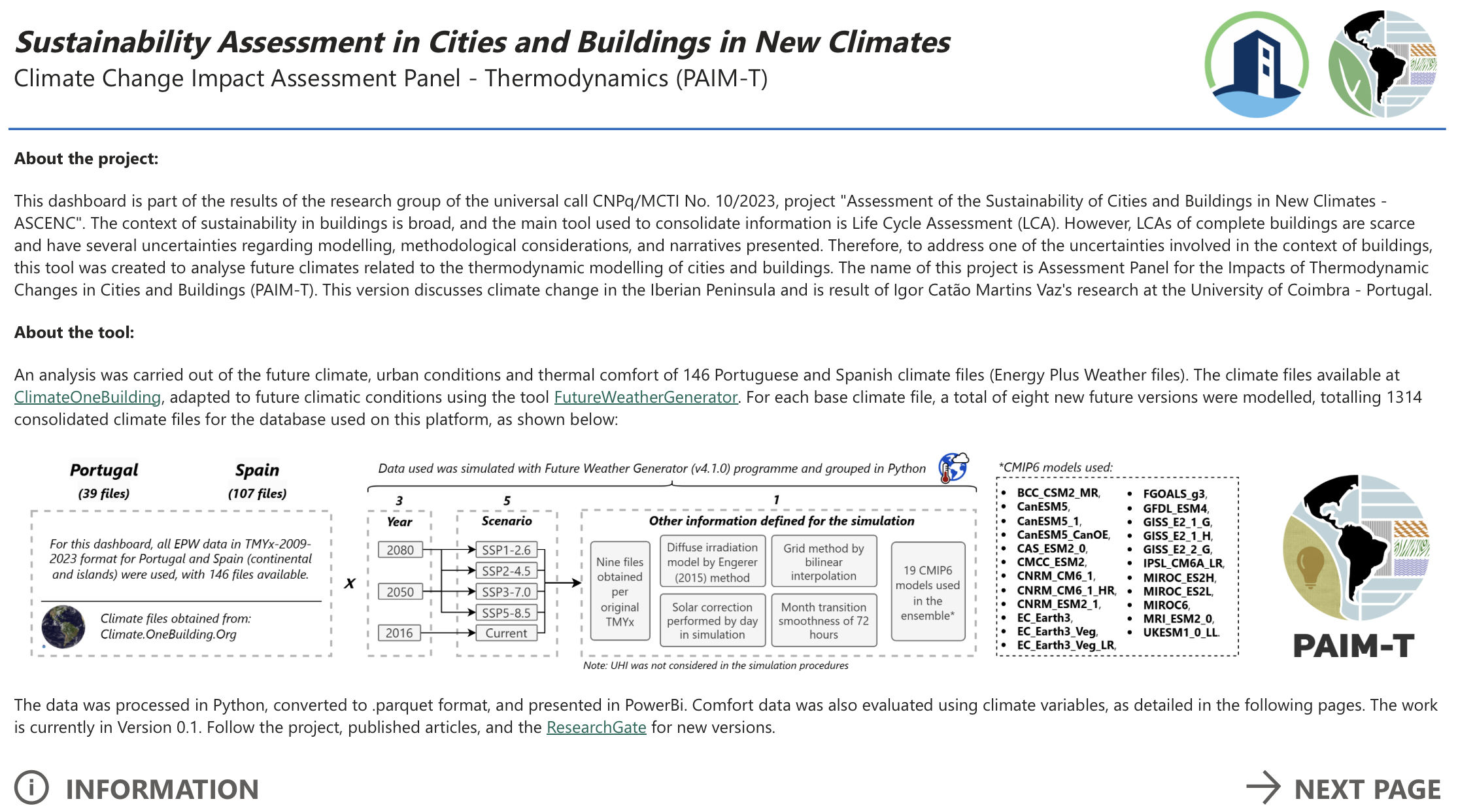 The CURA Lab has just released a new repository to ease access to climate change impacts in the Iberian Peninsula, including a comprehensive set of future weather files (EPW – EnergyPlus Weather) and an interactive Dashboard for visualisation and assessment of outdoor thermal comfort. The project, led by Igor Catão Martins Vaz and supervised by researchers Eugénio Rodrigues (CURA Lab/ADAI in Portugal) and Enedir Ghisi (UFSC in Brazil), aims to bridge a critical gap in urban planning and building design, easing access and visualisation of future climate data that anticipates the impacts of climate change across Portugal and Spain.